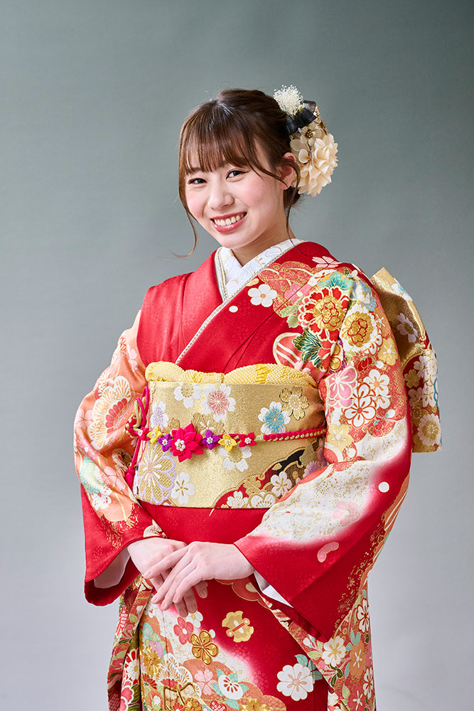 - 振袖+ヘアアレンジ+メイク+着付け+記念写真(1ポーズ、六ツ切サイズ1枚、豪華台紙付)